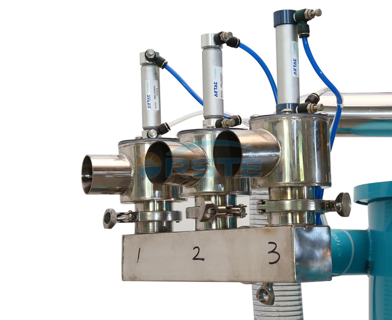 The control device starts the vacuum motor to take out the air in the hopper, the material valve is closed meanwhile, thus negative pressure is created. With the function of negative pressure, material in the storage tank is delivered to the hopper through material pipe. The vacuum motor stops working when the suction time comes out, the material valve is opened by material, then material falls into injection machine or other equipment.