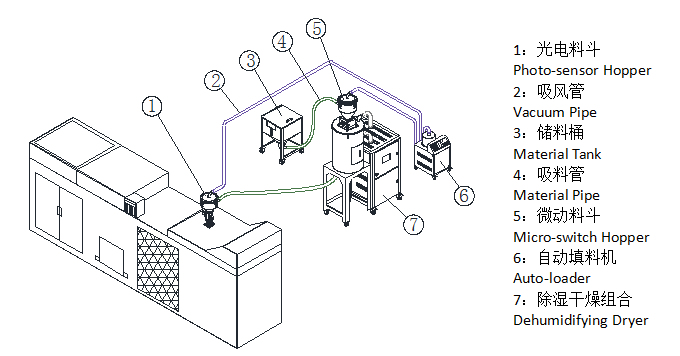 3. The insulated drying barrel adopts the design of lower blowing pipe and cyclone exhaust device to effectively improve the drying efficiency, prevent heat loss and ensure the drying temperature;